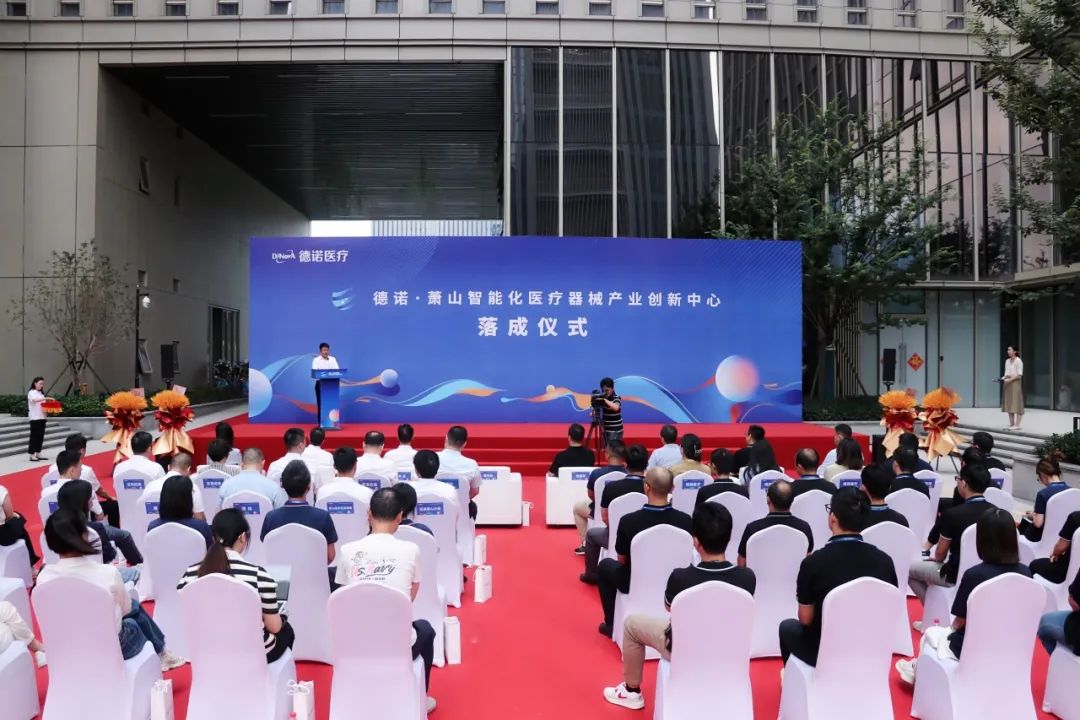 姜永柱代表区委区政府对德诺·萧山智能化医疗器械产业创新中心的落成表示祝贺,对长期以来关心支持萧山发展的各界朋友表示感谢。他说,生物医药产业是杭州重点发展的“五大产业生态圈”之一,近年来,萧山提前布局、高位统筹,谋划了包括医疗器械产业链在内的四条产业细分赛道,以萧山经济技术开发区江南科技城和杭州临空经济示范区为核心,规划建设杭州生物科技谷作为产业集聚区,为生物医药产业提供广袤的发展空间;依托浙江大学国际科创中心、西安电子科技大学杭州研究院等高能级平台,全力打造产学研一体发展的产业新高地,为生物医药产业提供强有力的研发支撑;谋划出台生物医药专项扶持政策,拿出真金白银支持医疗器械产业的研发创新、成果转化,为生物医药产业提供最全面的要素保障,全力打造高标准、高效率、高水平的生物医药产业生态系统。