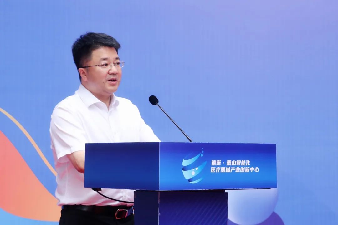 姜永柱表示,全区新型工业大会提出“奋力冲刺‘双千亿’,再造工业新萧山”,德诺萧山智能化医疗器械产业创新中心的落成启用,为萧山实现这一目标增添了新动能。此次产业创新中心的落成,是我区与德诺合作结出的硕果,肩负着我区医疗器械技术创新、产业培育的重大使命。萧山将继续致力于营造一流的创新创业环境,以最有力的政策支持、最优质的服务保障,帮助德诺在萧落地生根、开花结果,再创新辉煌。希望德诺在未来继续发扬敢为人先的创新精神,聚焦数字传感技术、人工智能等与医疗器械交叉融合,切实产出一批前沿技术成果、自主研发一批高端医用产品、引入培育一批优质创新项目,真正成为引领萧山高质量发展的样板和典范。同时,也希望德诺积极发挥在医疗器械领域的引领带动作用,为我区导入全球优质产业资源,不断推动产业链建链强链补链,助力我区医疗器械产业发展再上新台阶。