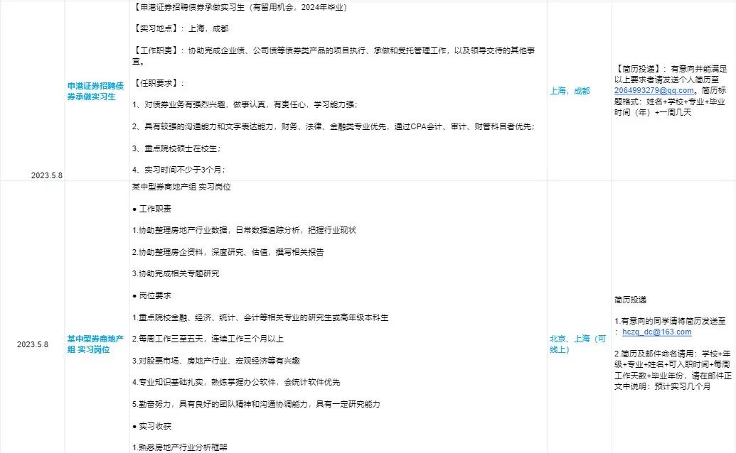 各大券商投行招聘信息汇总表