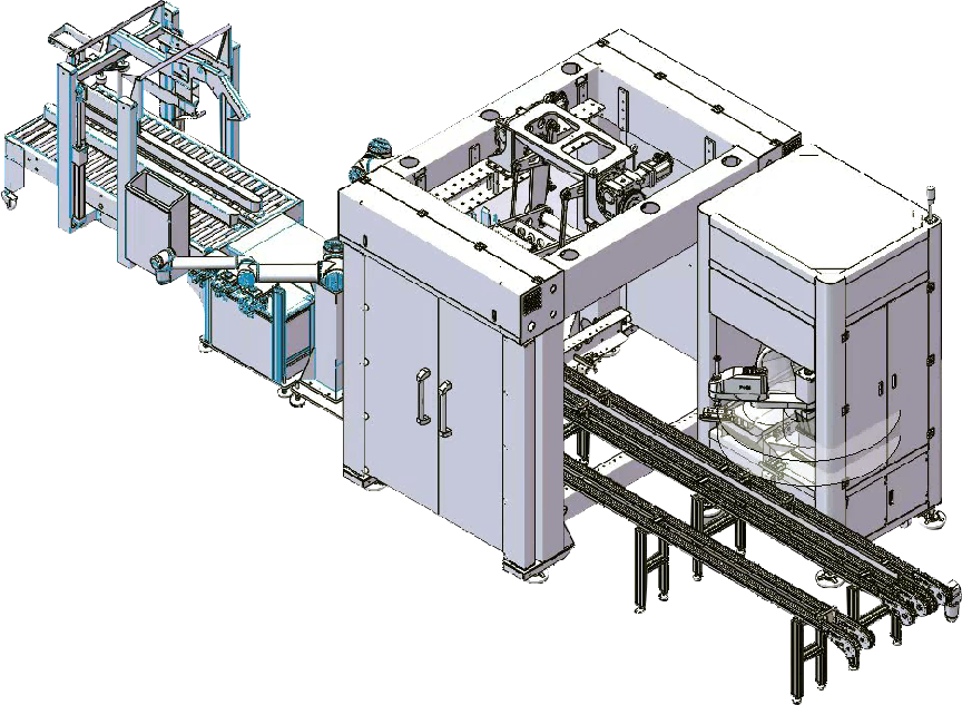 SRT一体化全自动理料装盒装箱包装线是用于解决包装行业物料品种多、物料特性差异大,以及包装材料规格多的综合性解决方案。其在减少人工干预的情况下,可以精准实现物料位置的检测和抓取、装盒、盖盒、开装箱、封箱的全自动化作业,以满足客户不同的产品和包装需求。