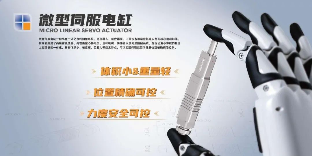 是一种小型一体化直线伺服系统,是机器人、医疗器械、工业设备等精密机电设备的核心运动部件。其内部集成了高精密减速器、高性能空心杯电机、丝杆机构、传感器以及伺服控制系统,在保证更小体积的基础上实现驱控一体化,具有体积小、精度高、负载大等技术特点,可以实现行程范围内任意位置精确伺服控制。