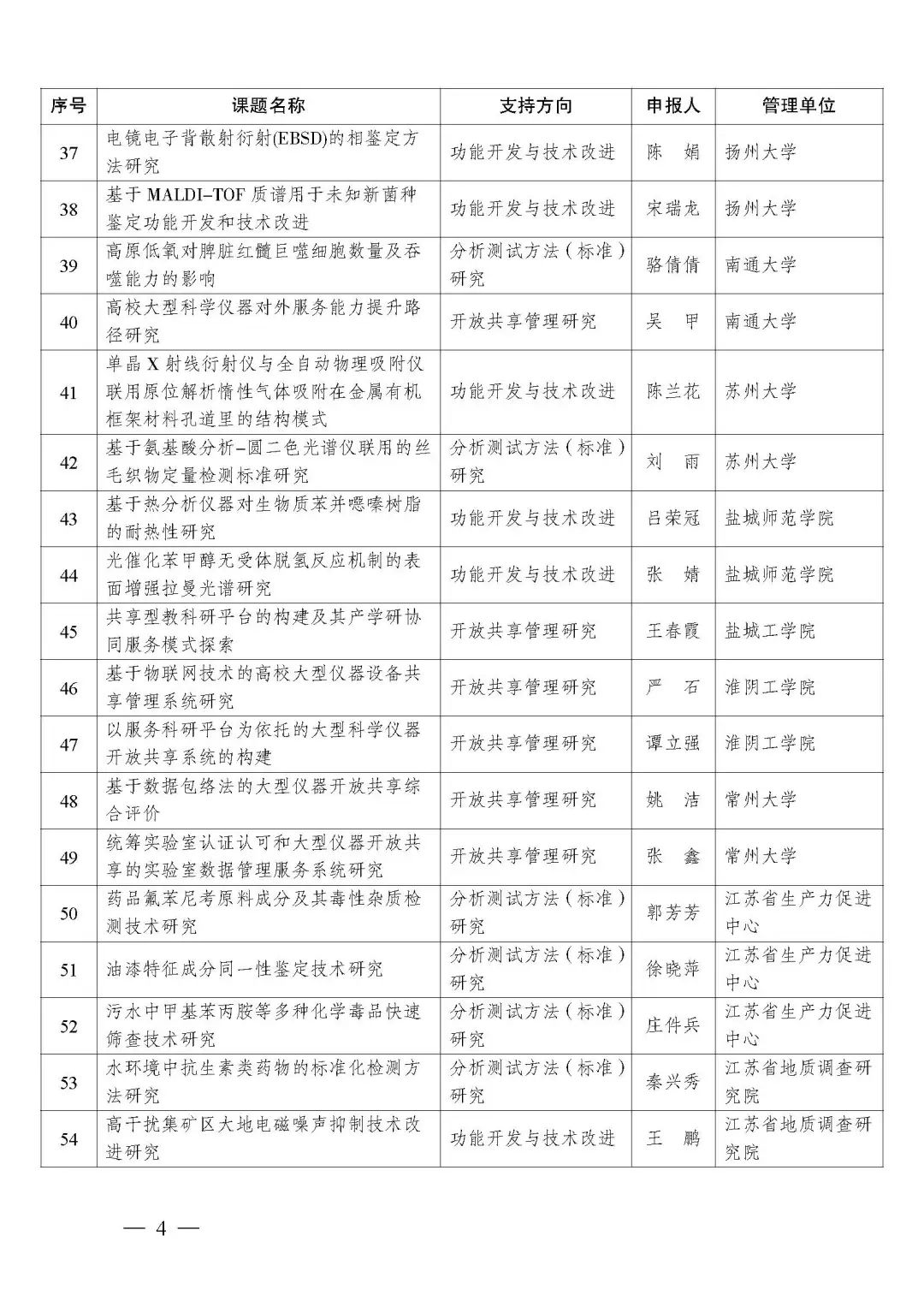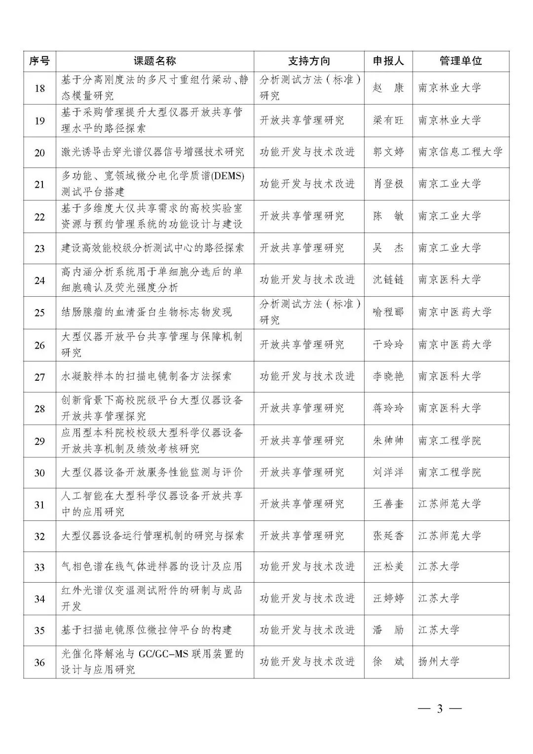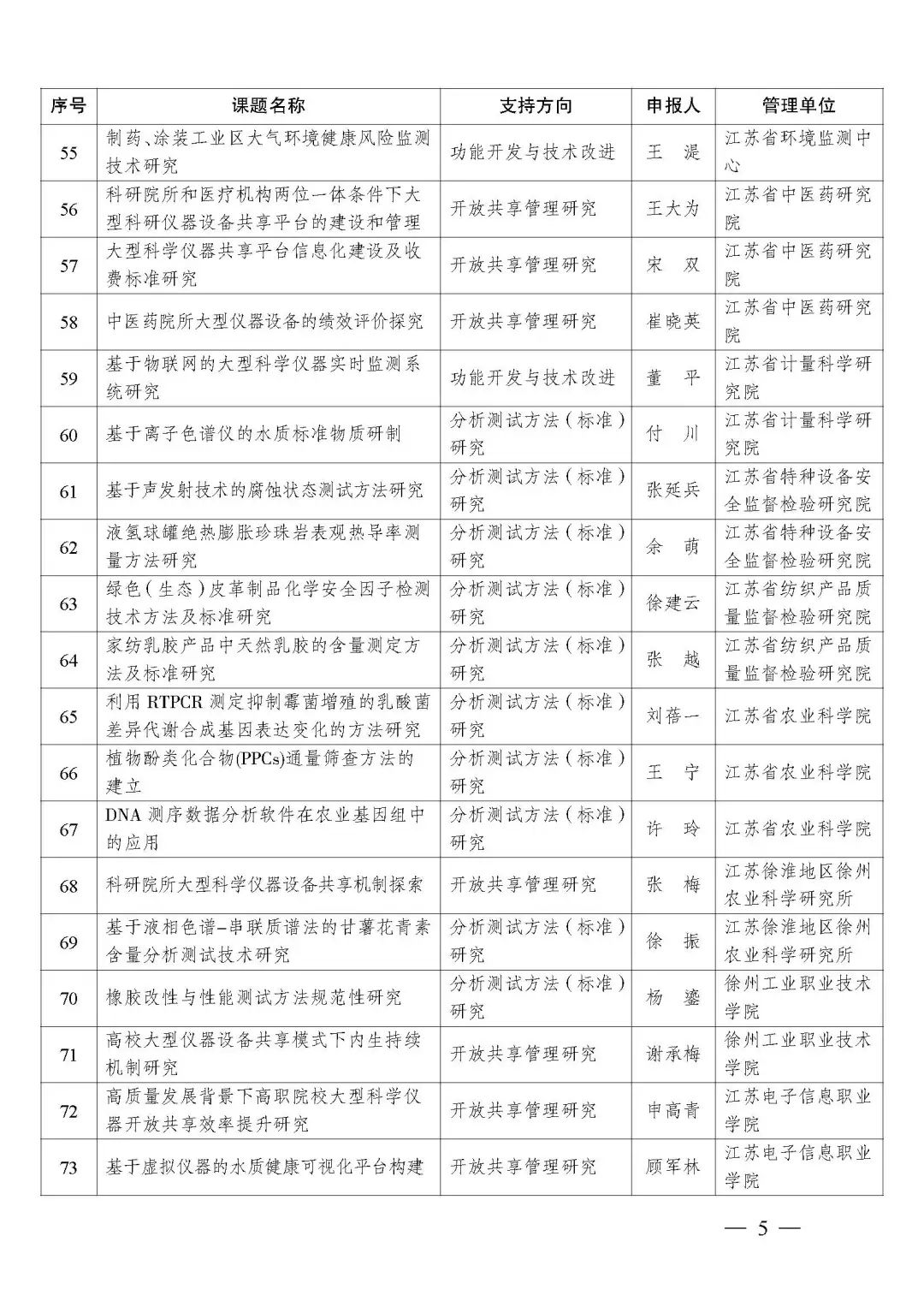 关于2023年度江苏省大型科学仪器开放共享自主研究拟备案课题的公示