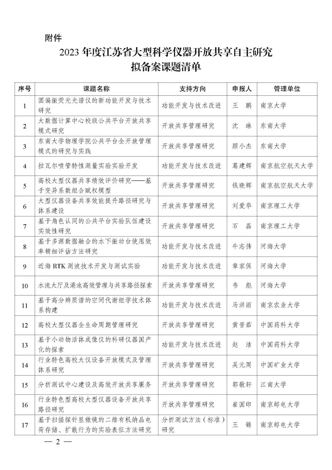 附件:2023年度江苏省大型科学仪器开放共享自主研究拟备案课题清单