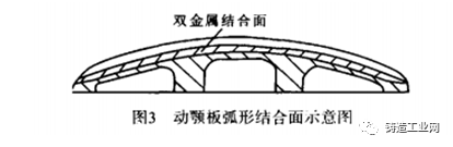 (2)金属型箱的采用,使得结合面形状不再局限于平面,它可按照具体颚板结合面形状要求设计,如对颚板的结合面可设计成波浪型(网1),这样可以增加双金属层结合面积,使得双金属问结合更为牢同对动颚板,还可再根据其纵向形状设计成弧形结合面(图3),这样可以减轻零件重量,最有效地利用金属材料。