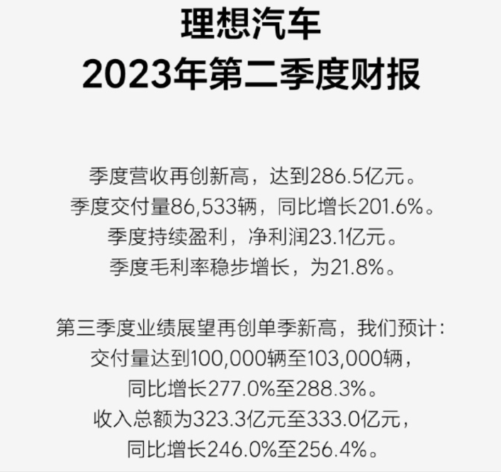 另外,理想二季度的财报出来了,大致看了下,几个重点: