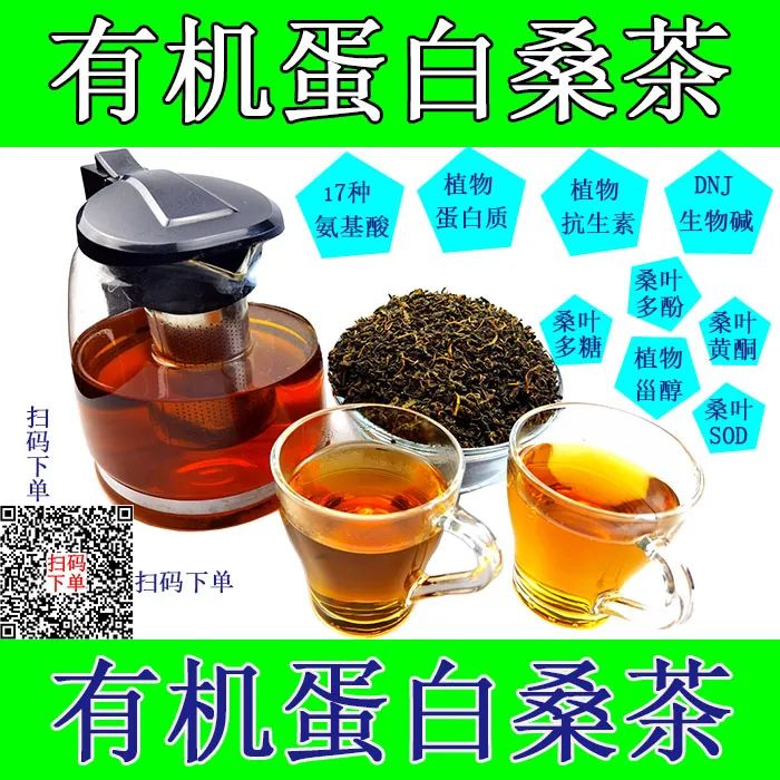 日本神奈川县卫生研究所和养蚕研究所等从1990年起,启动了"开发未利用食品材料"研究项目。研究人员对桑叶进行化验、分析后确认,它含有一种脱氧霉素。可阻止糖分解酶发挥作用。桑叶原物具有抑制血糖上升的功能,其主要功能成份是桑叶中的"生物碱",这是一种特殊的功能成份,它是其它动、植物所没有的。日本称这种特殊组成为"DNJ"物质。其主要作用是抑制蔗糖酶、麦芽糖酶、a--葡萄糖甘糖、a--淀粉酶的分解,能刺激胰岛素分泌,降低胰岛素分解速度;根据研究,桑叶的有效成份,其中钙、铁、钠的含量分别是茶的5倍、5倍、2、8倍。由此可见桑叶茶的功效之广。此外研究还发现,桑叶内的桑素(Mulberin)具有抗癌活性,并有抑制真菌的作用。