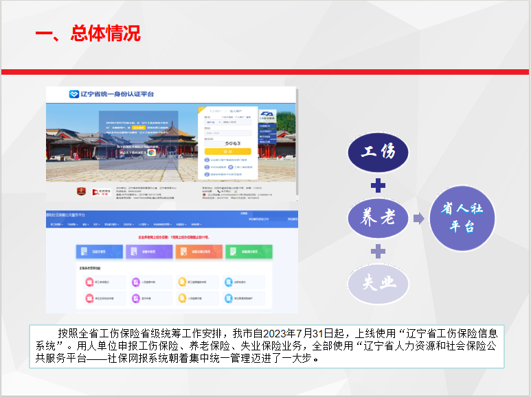 自2023年7月31日(星期一)起,我市上线使用“辽宁省工伤保险信息系统”,养老保险、工伤保险等相关业务使用省人社公共服务平台网厅同步办理,原金保系统停止办理工伤保险业务。