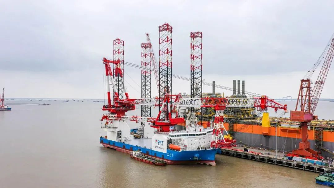 平台还采用“运输+储存+起重”一体化模式,起重机综合性能居于行业前列,具备国内市场最大的可变载荷能力、风机储存能力,能大幅提升风机部件吊装效率,降低工程建设成本,进而加快海上风电的降本增效和平价开发,能有效面对未来海上风电深远化、机组大型化的趋势。