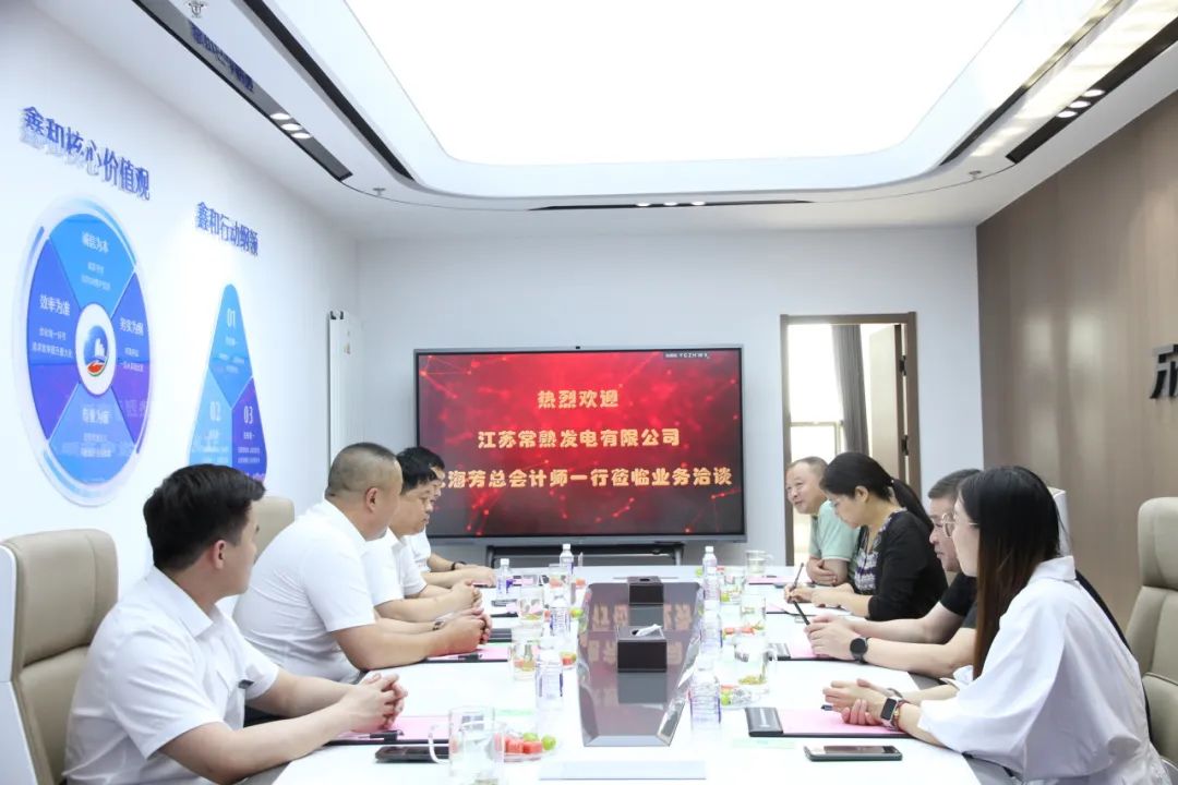 鑫和资源各位领导对常熟发电一行领导的到访表示热烈的欢迎,并对总会计师沈海芳的首次到访和工作指导表达诚挚的谢意,希望常熟发电的领导们能经常莅临鑫和资源指导交流业务。