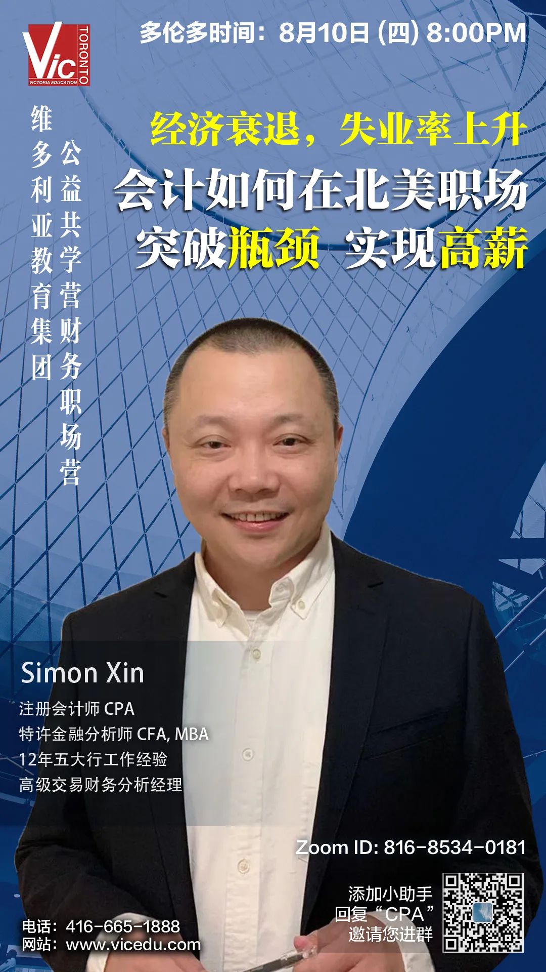 现在,邀请你加入线上“零基础CPA训练营”公开课,由十年加国顶级银行经验Simon Xin老师,为你提供系统专业的CPA讲解,轻松快速地帮你的成绩实现质的提升!