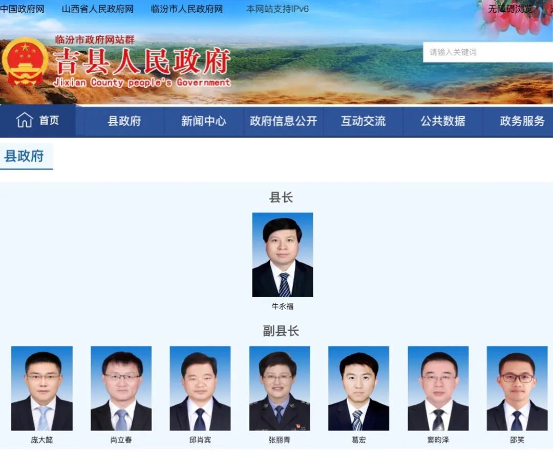 吉县政府官网《政府信息公开-领导之窗》更新——