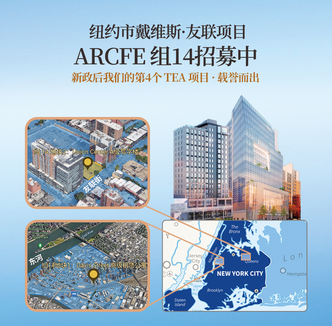 超过10年的成功经营历史,此项目是ARCFE的第14个EB5项目。ARCFE过往项目都集中在大纽约地区的热点地段,项目I-526和I-829批准率100%,荣获行业IIUSA协会I-829嘉奖。ARCFE有众多项目的退出和成功还款记录,并且区域中心 I-956 申请已获批,获得了移民局的再授权。