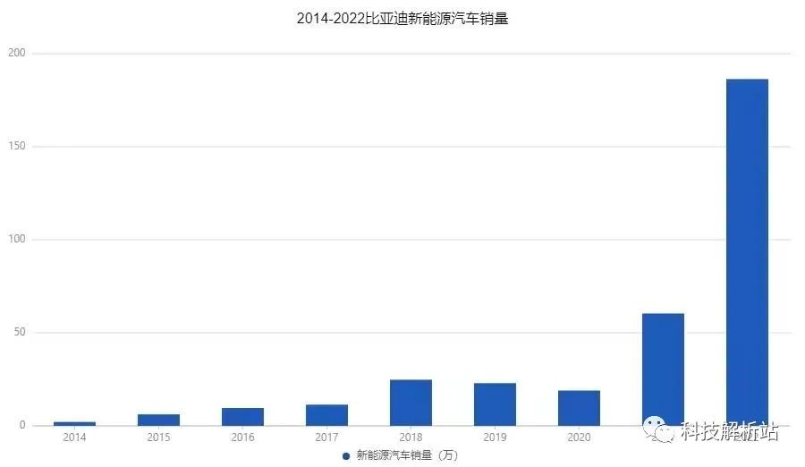 比亚迪新能源汽车销量爆发式增长始于2021年,在此之前比亚迪汽车销量平平,甚至一度处于亏损边缘。