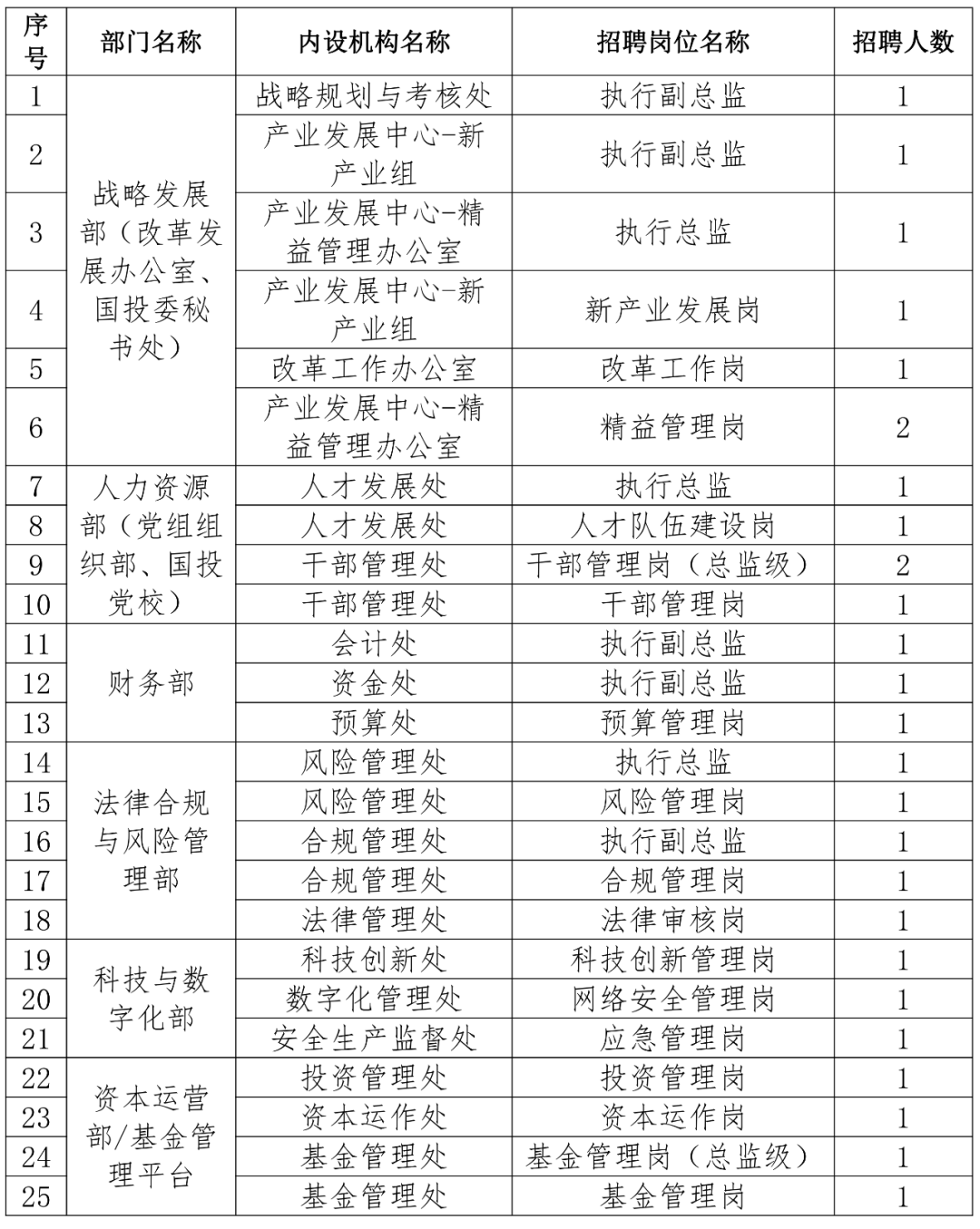 根据集团改革发展需要,为进一步拓宽选人用人视野,加强集团干部人才队伍建设,现面向集团内外公开招聘总部职能部门部分岗位人员。有关事项公告如下:
