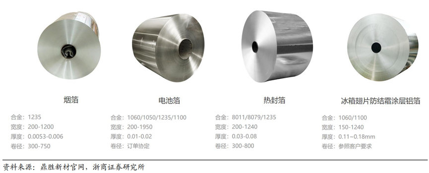 通常来说,双零箔主要用于食品包装、香烟包装、电子光箔等;单零箔用于部分食品包装、药品包装、电子电路信号屏蔽、空调箔等;厚箔主要用于空调箔、容器箔、建筑装饰以及工业用途。