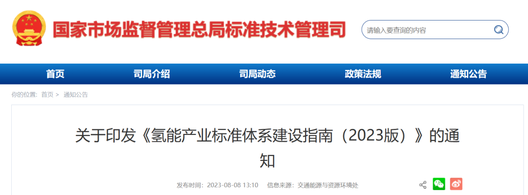 关于印发《氢能产业标准体系建设指南(2023版)》的通知
