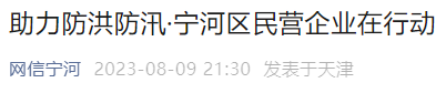 近日,受上游河道下泄洪水影响,我区范围内主要河道水位持续上涨,防洪防汛工作形势十分严峻。宁河区工商联闻汛而动,第一时间发出《宁河区工商联(商会)关于在防洪防汛中发挥民营企业作用的倡议书》,号召全区民营经济人士助力防洪防汛。连日来,爱心企业纷纷慷慨解囊,踊跃捐款捐物,全力稳就业、促发展、保安全,以实际行动彰显宁河企业家的家国情怀和社会担当。