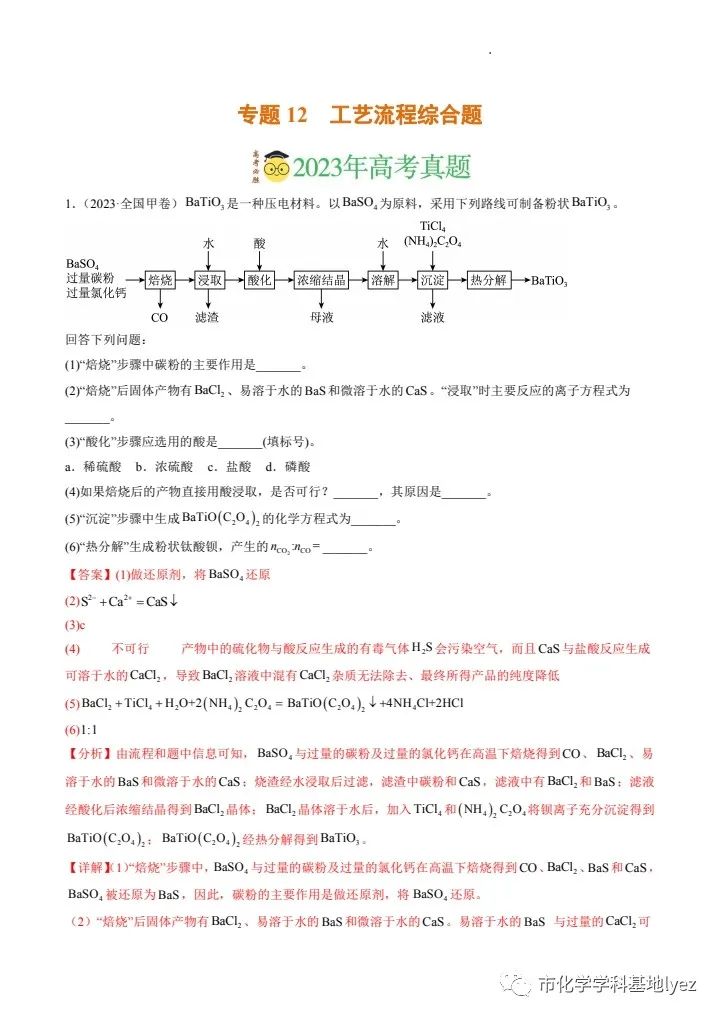 【2023高三专题复习】12. 工艺流程综合题