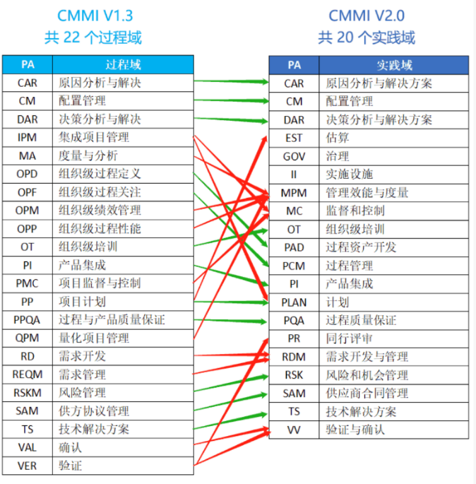 CMMI模型和ISO 9001体系一样,都可以被看成质量管理体系 (框架) ,只不过CMMI更适用于软件开发领域。CMMI模型最新版本是V3.0,但是对企业认证来说,主要还是依据V2.0版本进行,而我本次分享的内容,还是按照软件开发我本人比较熟悉的V1.3版本来撰写,CMMI本身版本更迭及内容变化,不是本文的关注的重点,不做细表。