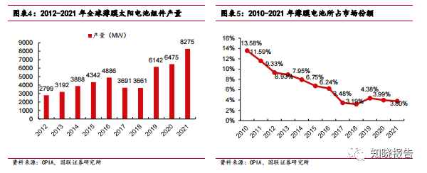 1)硅基薄膜电池:产品性能和生产成本上相较晶硅电池无明显优势,并且技术 提升空间有限,企业相继停产、减产,逐步退出主流市场。