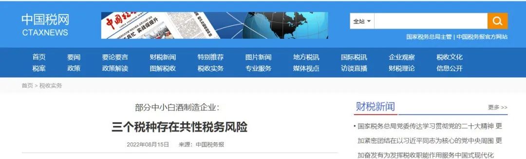 白酒行业由于消费税的存在,税负相对较重。对于中小企业而言,由于缺少规模效应和渠道,这种成本问题更加严重。本文盘点了中小白酒制造企业存在三个税种的共性税务风险,包括增值税风险、消费税风险和所得税风险。部分中小白酒制造企业存在“小、散、弱”的特点,税收遵从度还不够高。