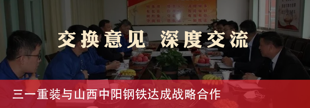 8月8日,中国煤炭机械工业协会理事长杨树勇先生一行莅临三一重装沈阳产业园交流访谈,三一重装总经理曲小飞先生、三一重装副总经理徐鹏飞先生、三一重装采掘研究院院长尹力先生等主要领导陪同并出席会议。