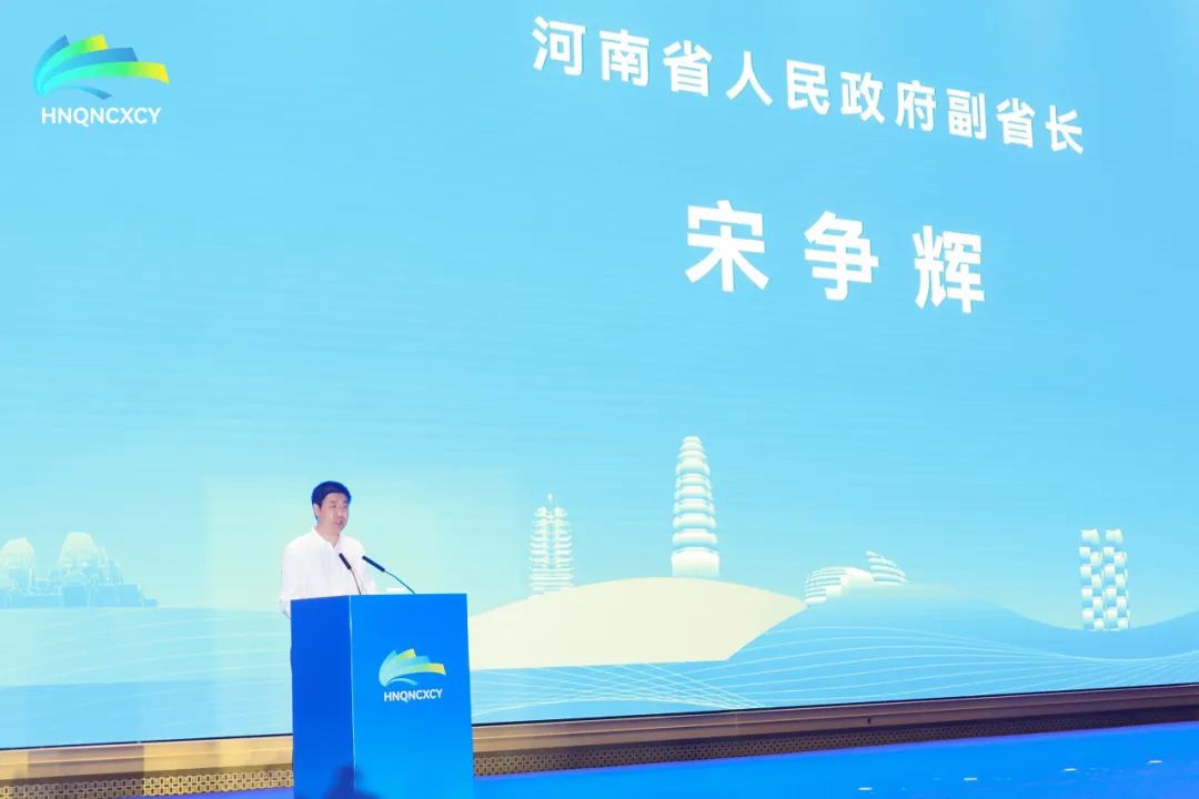 宋争辉指出,近年来,河南省委、省政府深入实施“创新驱动、科教兴省、人才强省”战略,国家创新高地和全国重要人才中心建设迈出坚实步伐,努力营造一流营商环境,市场主体蓬勃发展。希望与会青年企业家把更多目光投向河南,带动更多资源项目投到河南,河南将以最大诚意、最优服务为项目落地、企业发展保驾护航;希望更多优秀学子毕业后扎根河南、创业河南,在中原大地绘就青春出彩华章。河南省政府副省长宋争辉致辞。