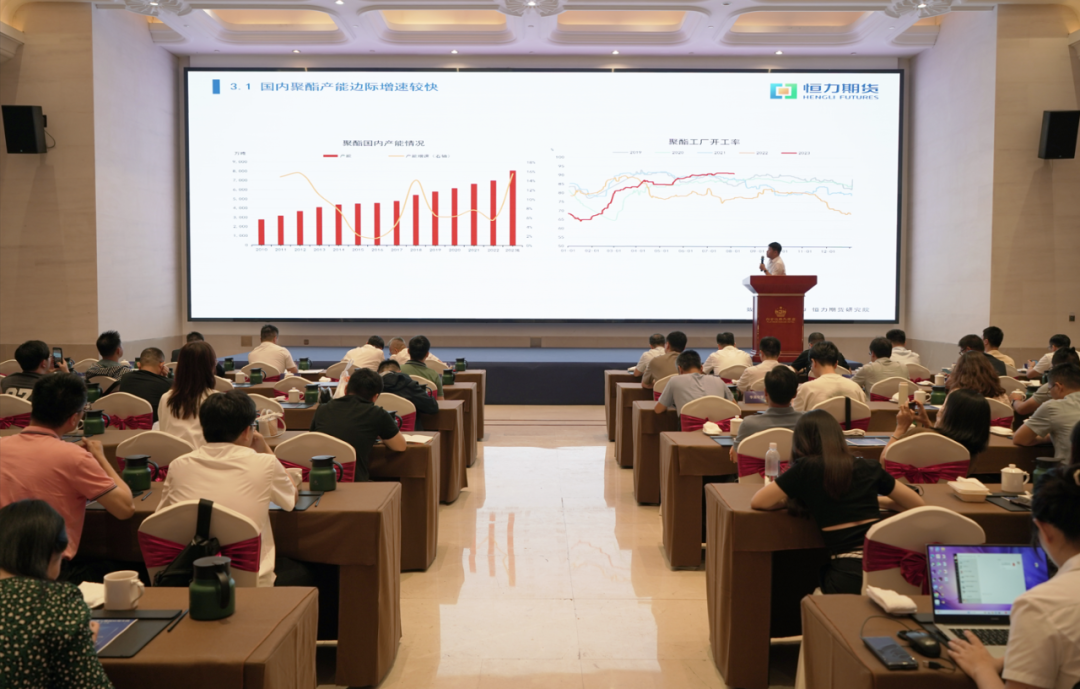 恒力期货研究员周云以“PTA供需格局演变”为题分享了自己的观点:近年来,聚酯产业链相关品种的产能向头部企业进一步集中,PTA估值体系日趋稳定,产业链利润主要集中在PX端,石脑油和PTA端利润微薄,下半年市场利润分配博弈。聚酯的出口是最值得关注的,2023年上半年聚酯出口同比增长约12%。终端需求方面,内需上半年同比维持两位数增长,纺织品服装出口受阻,上半年同比下滑9%左右。