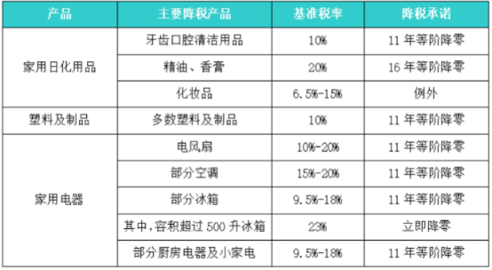 中国对日本主要轻工产品承诺税率