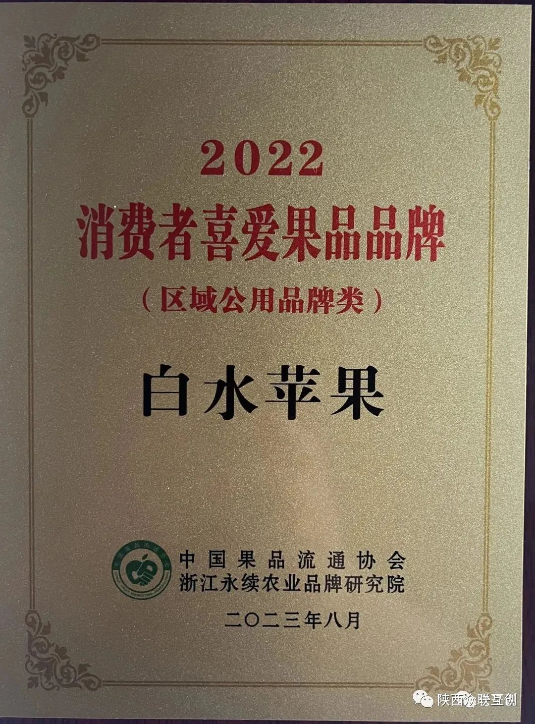 白水苹果入选“消费者喜爱果品品牌”,位列全国水果第三,苹果第二.