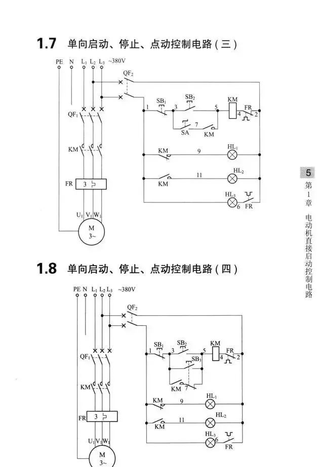 这些控制电路都是380V,实际中也可能有220V、110V、36V、24V等等。有的也有交流直流之分,在这里就不一一细说了,大家可以看到这些图后,举一反三。