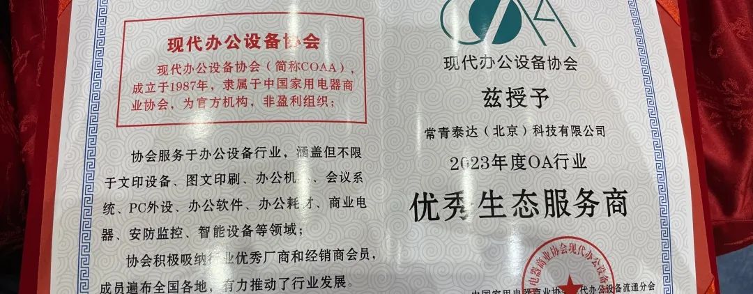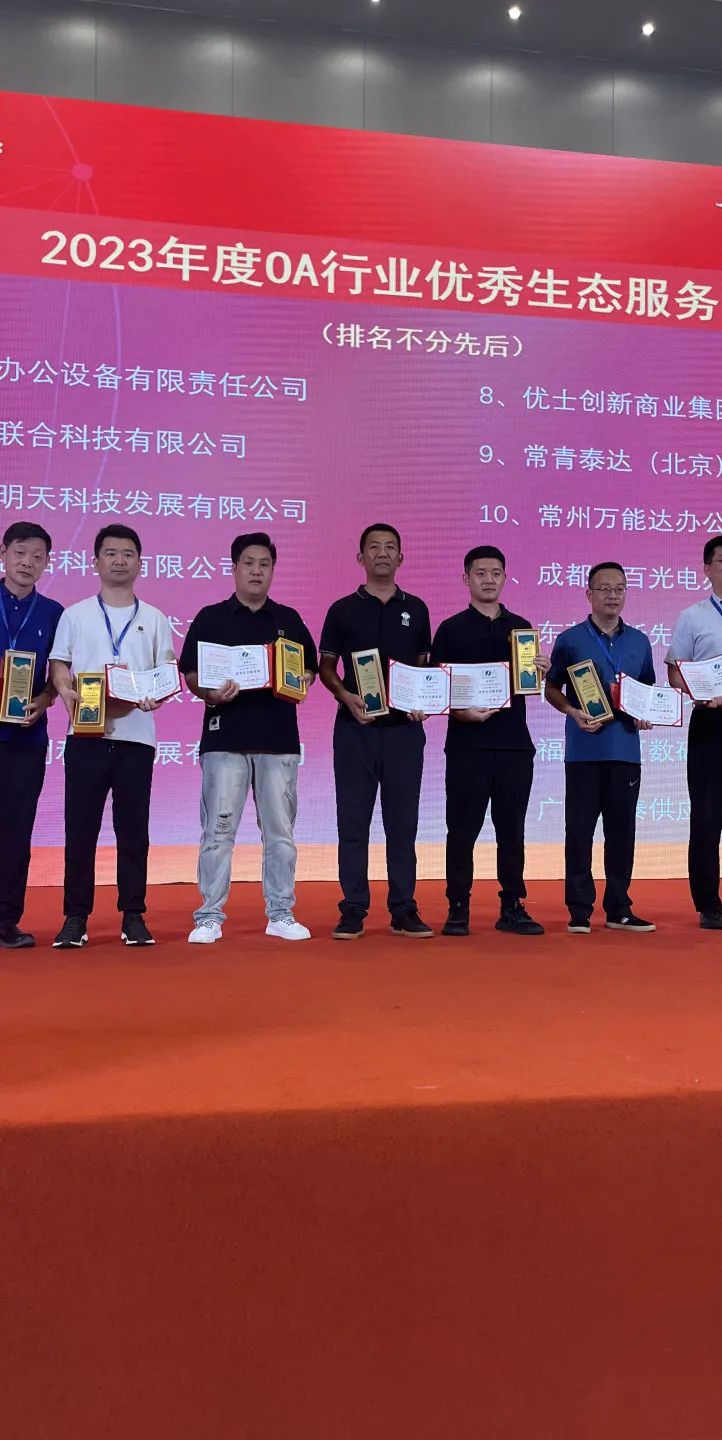 自2018年起,租掌柜为满足企业用户更高的办公需求,不断考察市场,在传统文印设备服务基础上,与众多一线会议品牌达成深度合作,拓展业务,并通过几年的努力,得到更多客户与行业认可。届时荣获此次现代办公行业协会授予荣誉,成为优秀生态服务商之一。