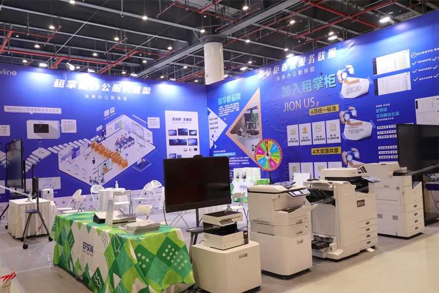 展会内容丰富,众多一线办公品牌齐聚,展示智慧办公解决方案,包括了许多中国当前最前沿的创新技术与产品。展会现场,作为17年办公服务品牌的租掌柜,也为大家带去了丰富的办公服务产品与解决方案。包括爱普生冷印技术产品方案 、newline智能化会议空间方案,以及租掌柜自有MPS+SAAS文印全场景的解决方案。同时,租掌柜品牌也携一手品牌联盟资料,与现场各行业伙伴交流探讨,致力于让每个城市都有一个租掌柜!