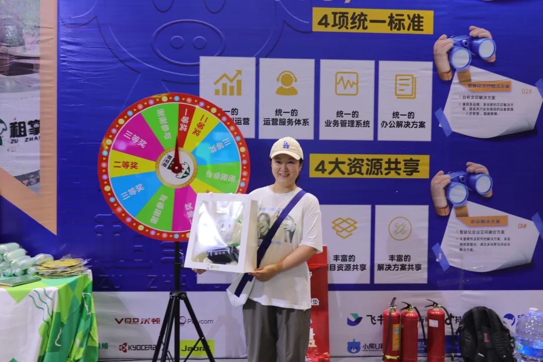 位于展馆B8展位的租掌柜,吸引了诸多服务商及用户的驻足。租掌柜文印联盟版块,为大家展示了爱普印文印系统后台 、刷脸管控方案 、SAAS管理系统等解决方案;会议产品区域,为大家展现了智能会议空间等产品方案。另外展区内还为现场伙伴准备了诸多福利,会议全场景系列产品免费申请试用通道 、租掌柜品牌ip礼品抽奖区域等。对于终端用户来说,能够在现场体验高效产品方案,更能推进企业对未来智能办公产品的应用。而对于行业伙伴来说,亲临现场,才能更加了解租掌柜品牌的专业与服务。