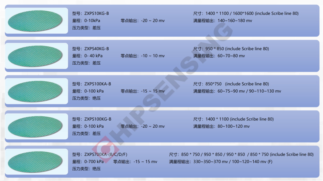 2.2压力晶圆选型表(部分)