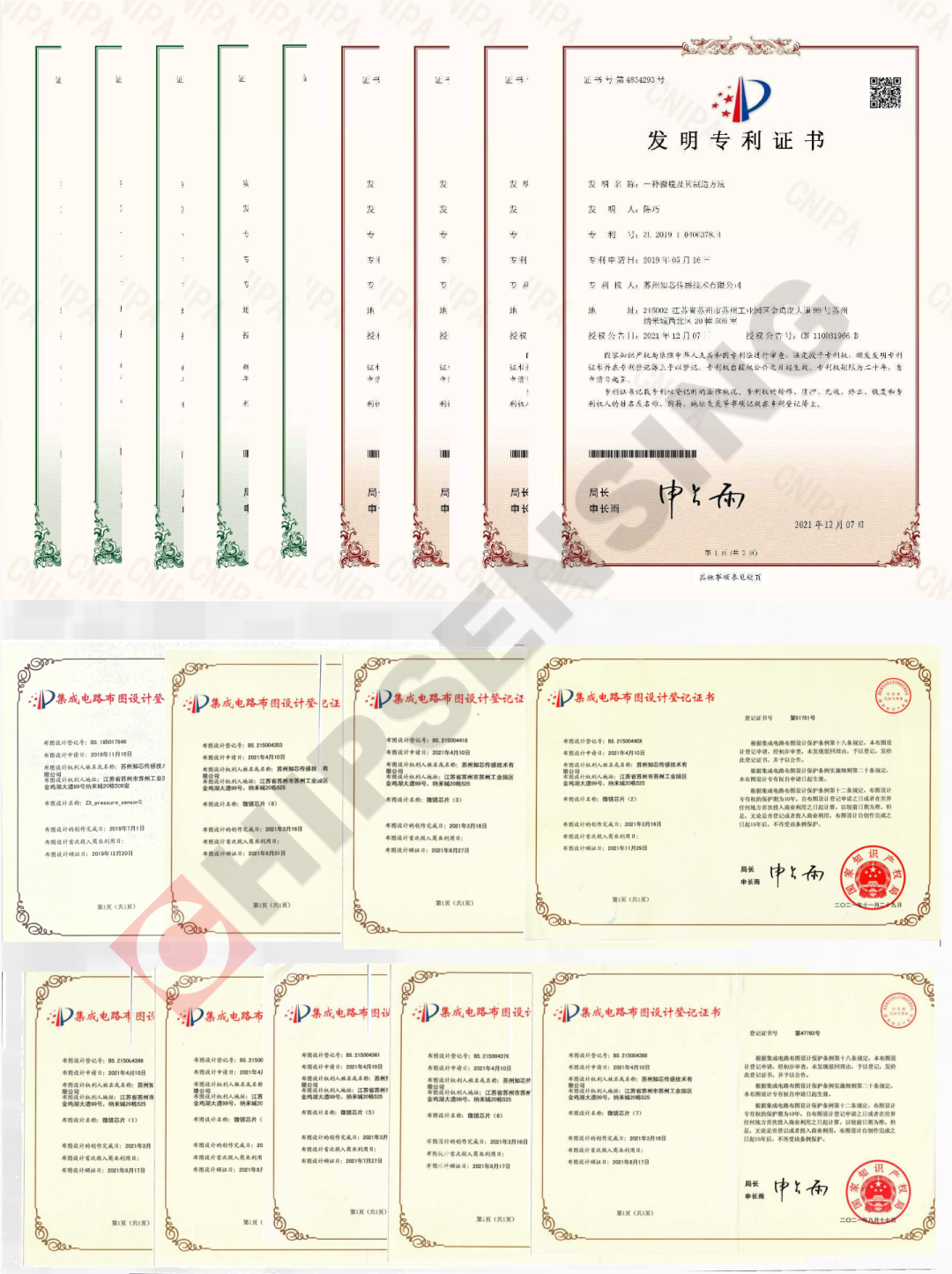 MEMS芯片设计:MEMS晶圆具有完全自主的核心知识产权,获得了系列发明专利和实用新型专利。