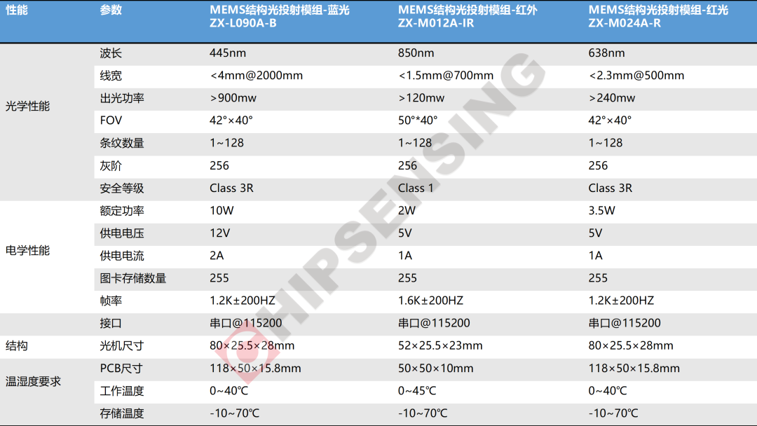 3.4MEMS微镜模组选型表(部分)