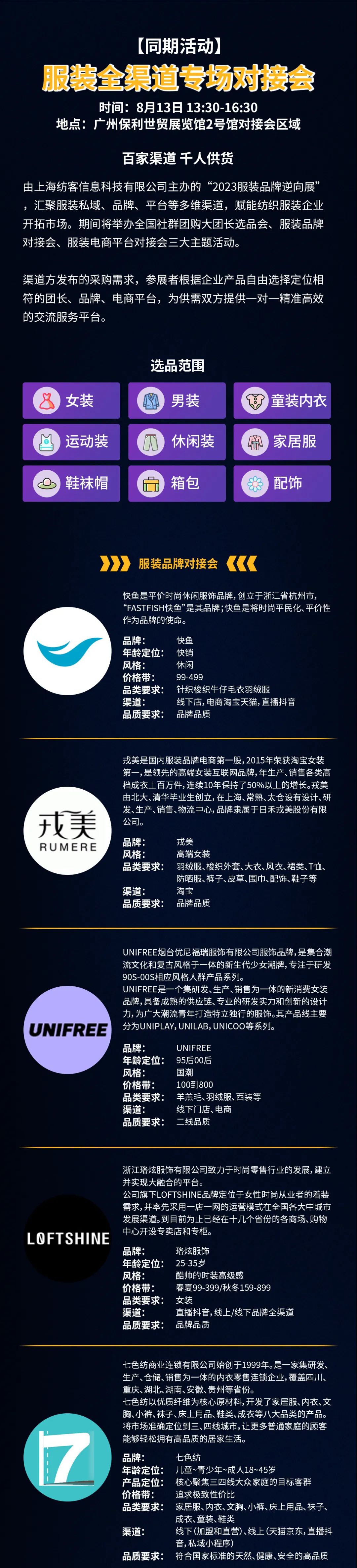 一般涤纶没有亲水性基团,呈疏水性,吸湿排汗差,通过改造的吸湿排汗涤纶将含亲水基的聚合物与涤纶切片结合,吸湿导湿功用远高于一般涤纶,构成出色的吸湿排汗功用面料;尼龙面料使用异形截面使表面构成凹槽,敏捷吸收皮肤表层汗水并瞬间排出体外,再由布表的纤维将汗水涣散并蒸发掉,然后抵达吸湿排汗、调理体温的意图,使肌肤坚持清新。涤纶和尼龙吸湿排汗面料均具出色的吸水性和干燥性,表面的微孔或沟槽使得水分简单被其吸收并涣散挥发,吸水后也不会出现如棉料那般因吸水而胀大贴紧皮肤的粘腻感,使人能够纵情运动,不会因为出现汗流浃背而感到冷湿。现在使用最广且作用最好的,都是使用截面异形化出产的吸湿排汗纤维,如:美国杜邦公司的Coolmax纤维,台湾远东纺织的Topcool纤维,台湾中兴纺织的Coolplus纤维等。吸湿排汗面料常用标准有:纤维:1.4D*38mm;长丝型:50D/72F、100D/144F、150D/144F、75D/72F、 75D/48F、75D/36F、100D/72F、100D/48F、150D/96F、150D/48F等;纱线类:16S/1、20S/1、30S/1、32S、40S、50S、60S等。吸湿排汗面料质量较轻,导湿易清洗,肯定是运动衣物的不二材料之选。【纺客传媒FUNTEX】联合【服装星球】、【中服文化】将于2023年8月13-14日在广州举办《2023中国服装品牌新渠道峰会》,对当下服装业生存现状全景式复盘。峰会将邀请服装品牌创始人、销售总监/电商总监、供应链总监、设计总监、知名商超渠道负责人、区域经销商/代理商、大消费产业赛道投资机构、电商平台服装类目负责人、直播电商MCN机构买手、跨境电商大卖采购负责人、团购大团长/采购负责人、企业级礼品定制采购、各类目服装厂老板等嘉宾齐聚广州,论剑新渠道,重塑品牌力、奏响最强音!