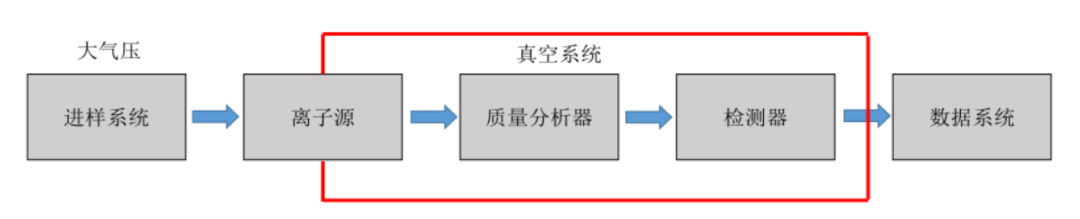 质谱仪是通过测量带电粒子的质量进而对物质进行定性和定量分析的高端分析仪器。通俗来讲质谱仪属于一种“灵敏度极高的天平”,可以直接称量物质的原子量、分子量,质谱仪主要结构如下图所示:
