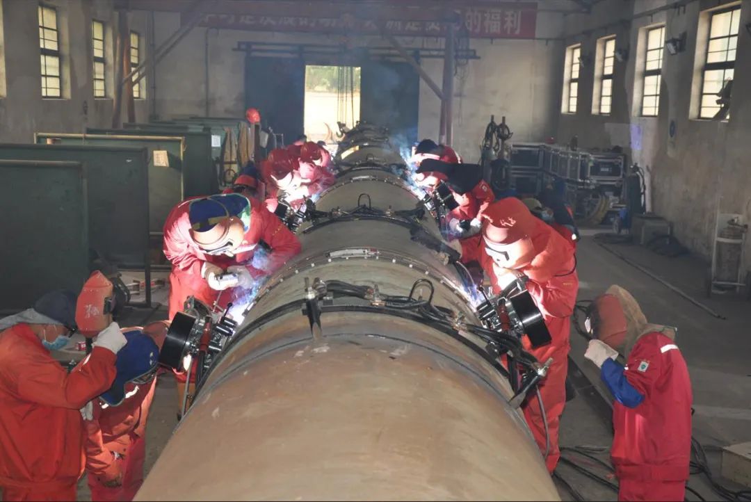 2020年,公司中标了首条1422毫米大口径全自动焊接管线——唐山LNG外输管道工程。这是目前国内最大口径管线,也是公司首次干这么大口径管线,面对复杂的焊接工艺,很多都是未知数。