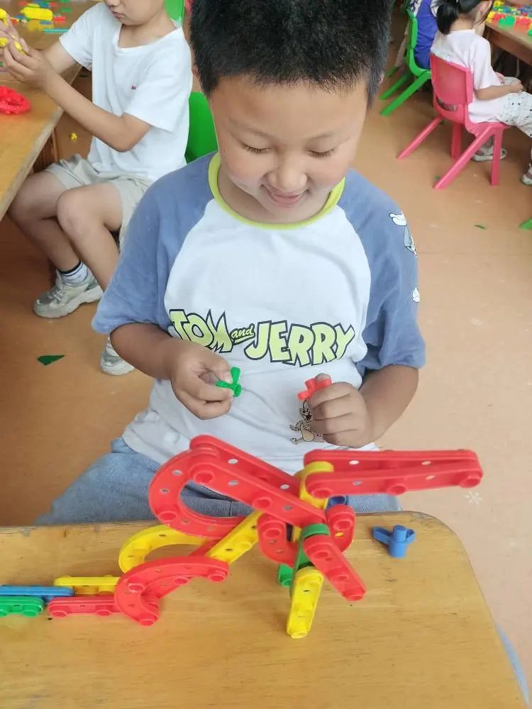在活动的过程中孩子们充分的发挥了主动性和创造性,让拼插玩具真正的发挥了它的“作用”,每个孩子都在玩玩乐乐中得到了锻炼和提高,也促进了孩子们全面、健康、和谐的发展。