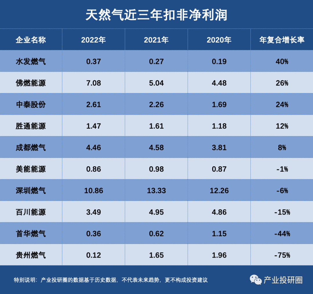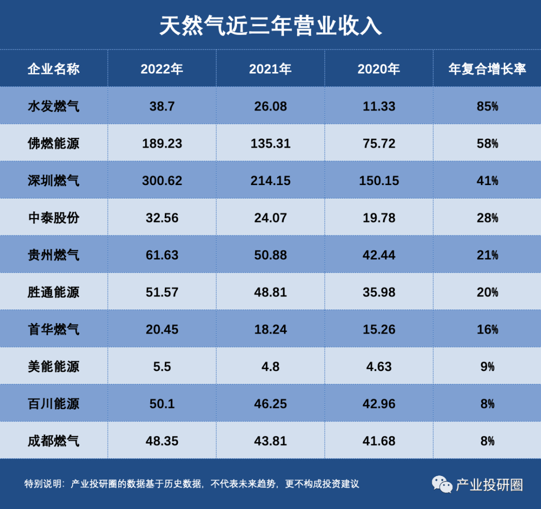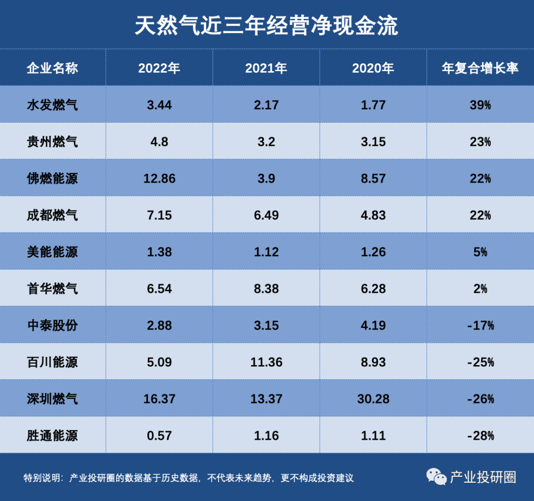 今天我们选取67家业务与天然气相关的企业作为研究对象,以营业收入复合增长率、扣非净利润复合增长率和经营性现金流复合增长率三项评价指标,选取十家最具潜力的公司。