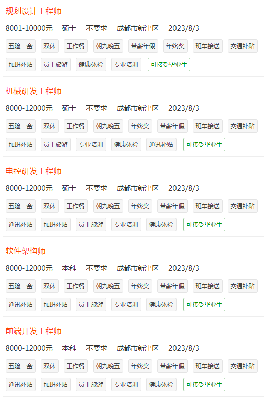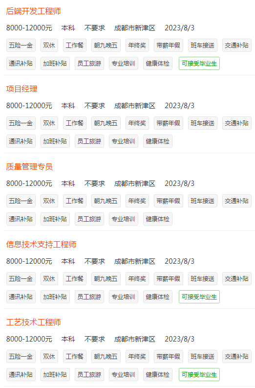 正在招聘的职位信息