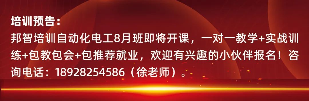 我是2004年出生的,今年19岁。毕业后一直想找一份技术含量高的职业,来邦智学习自动化电工,就是想趁着年轻多学一门技术。钟老师教学非常好,逻辑清晰,浅显易懂。我在这里想给00后的朋友分享一句话:趁着年轻,多学点技术,为自己的职业加分!