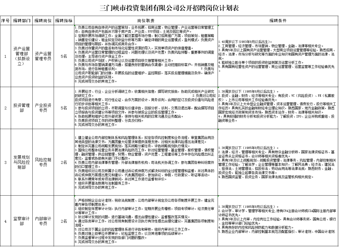 附件1:三门峡市投资集团有限公司公开招聘岗位计划表.xlsx