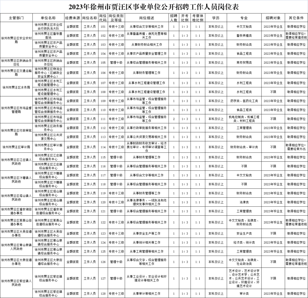 徐州市贾汪区事业单位招聘