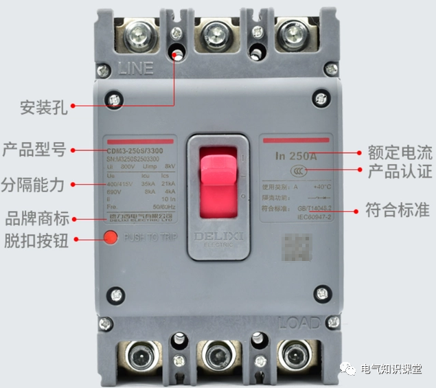 ※ 举个例子,我们常用的CDM3-250S/3310,这个型号就是指250A的三相断路器带分励脱扣器,本体带有热动脱扣+电磁脱扣器,极限短路分段能力是35KA