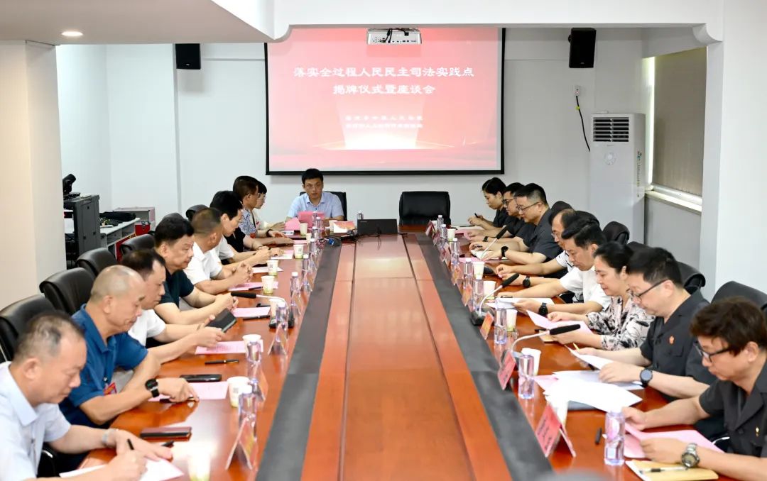 近日,市财经行业人大代表联络站举行全过程人民民主司法实践点挂牌座谈会,市人大常委会副主任游通铃出席活动并讲话。市人大财经委主任委员吴菁、常委会人代室主任张文胜参加活动。