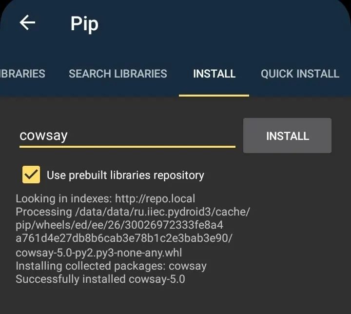 下载并安装这些插件后,您可以按照以下步骤在 Pydroid 3 上使用 pip install: