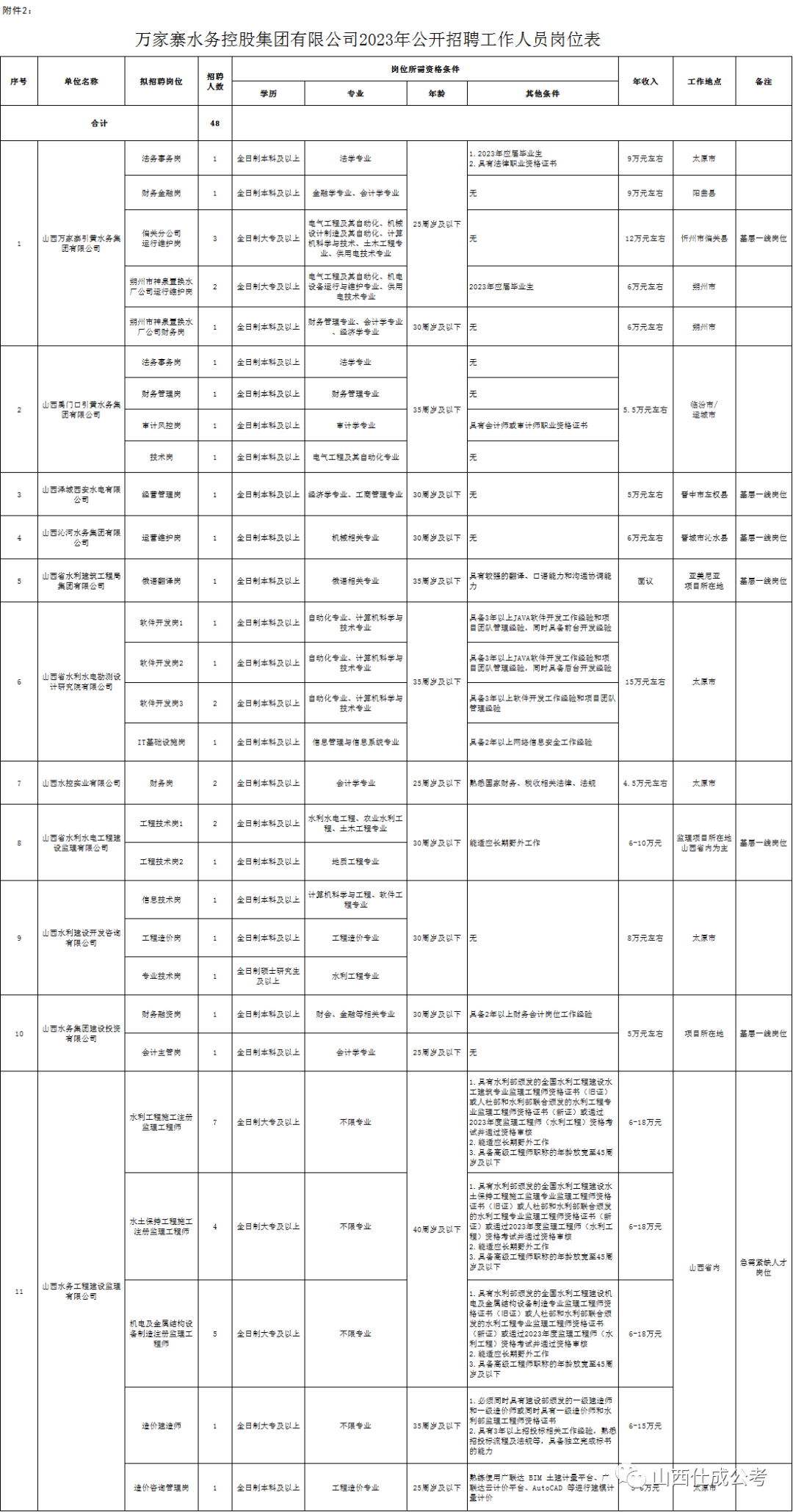 万家寨水务控股集团有限公司2023年公开招聘工作人员公告